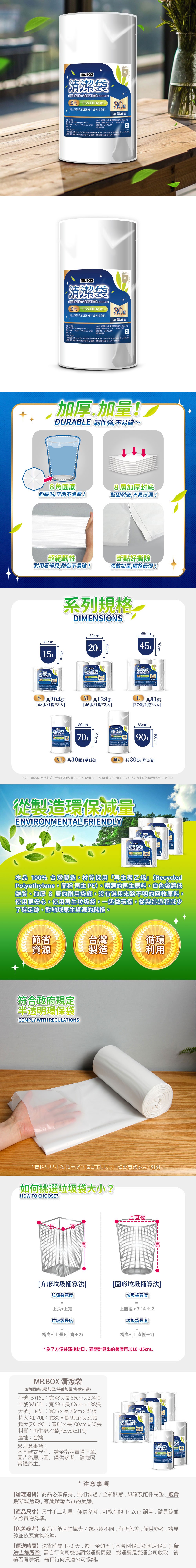 Mr.box 防漏加厚清潔垃圾袋 白色透明 超大(2XL)90L 20捲