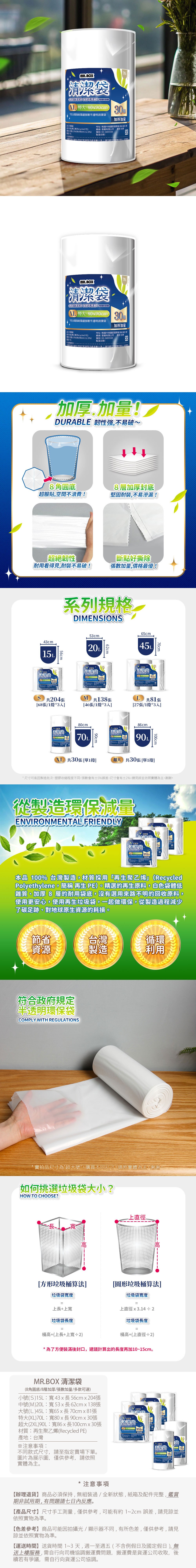 【Mr.box】防漏加厚清潔垃圾袋中大任選(白色透明/30捲)中20L-1,380張/30捲
