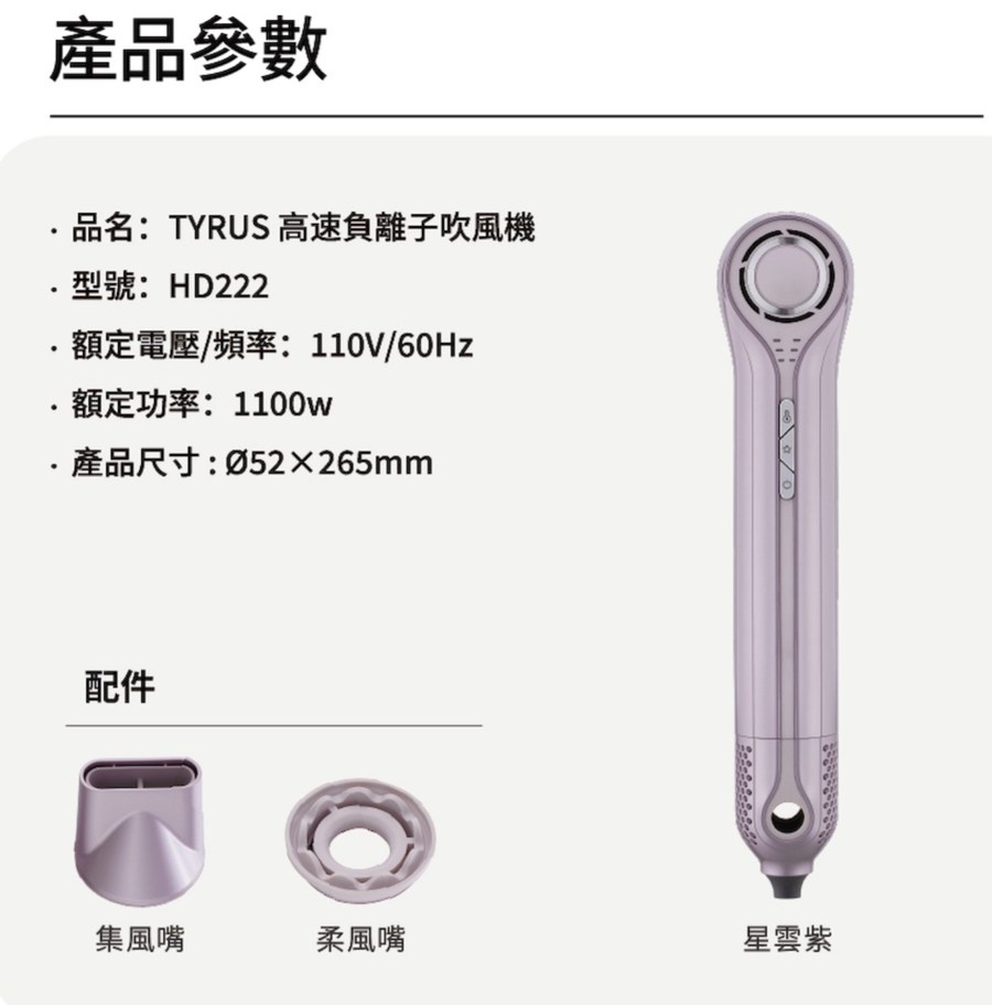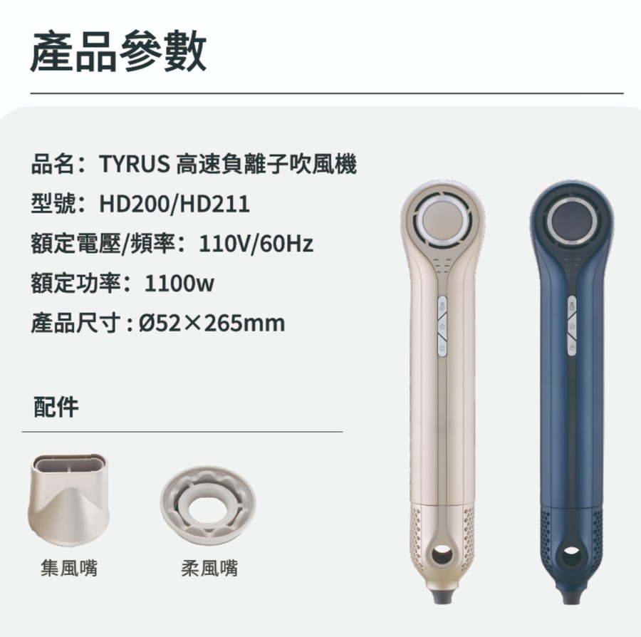 彼安特 TYRUS 高速負離子吹風機 HD200 金 / HD211 藍 / HD222 紫星空藍 HD211