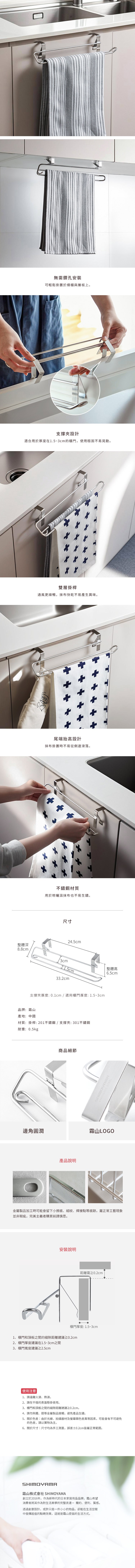 SHIMOYAMA 日本霜山 不鏽鋼廚櫃門後掛架/雙桿抹布架 1個 33.2 x 8.8 x 6.5cm 銀色