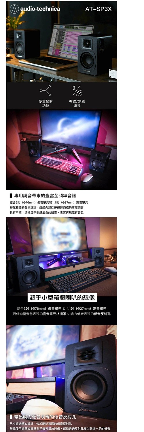 audio technica 鐵三角 AT-SP3X 主動式書架型喇叭