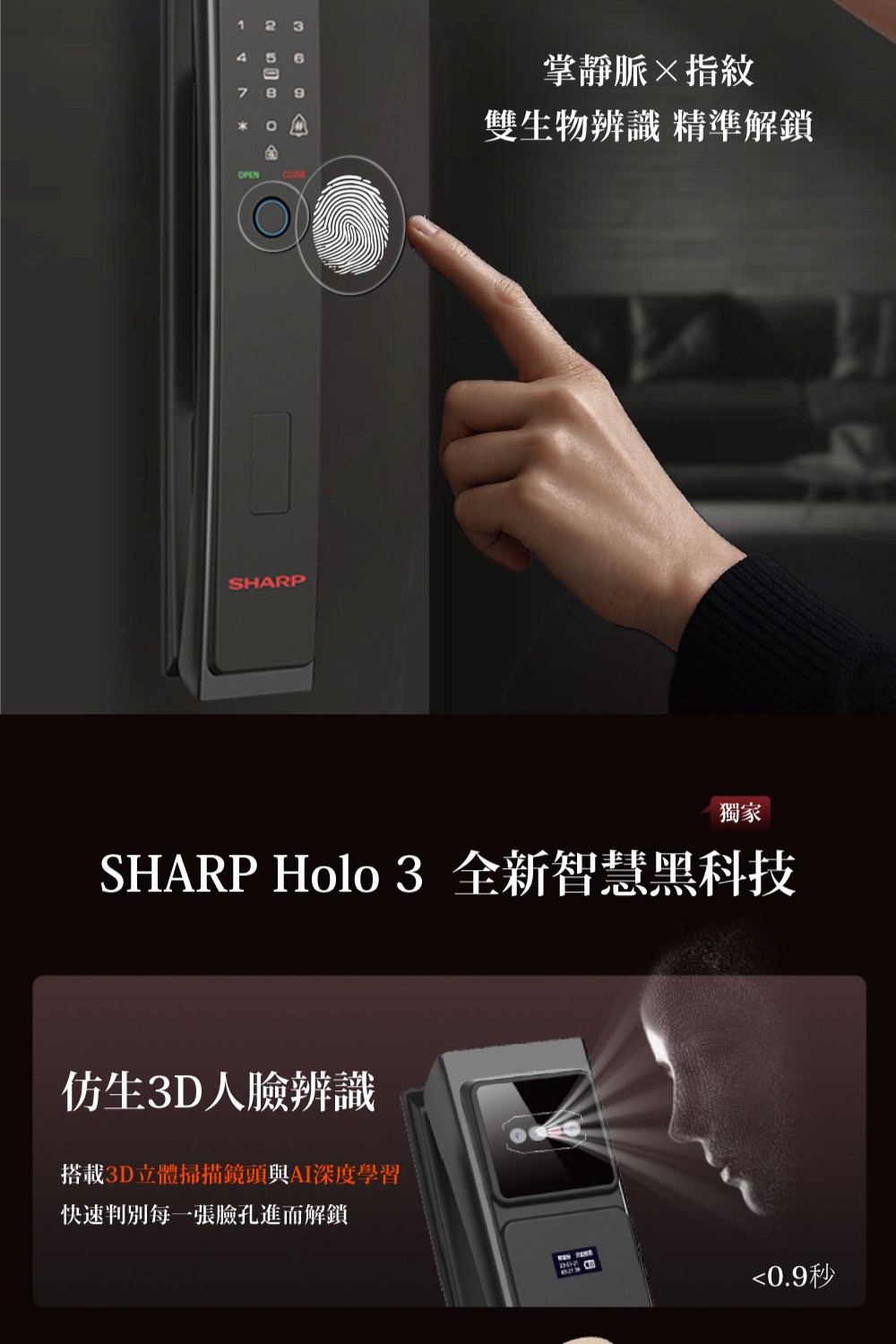SHARP 夏普 Holo 3 臉部辨識/掌靜脈/APP/指紋/卡片/密碼/鑰匙 含基本安裝