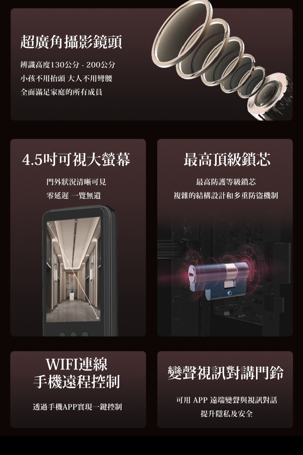五合一把手式指紋密碼鎖 智能感應防盜電子鎖(遠端/指紋/密碼/鑰匙/感應卡)