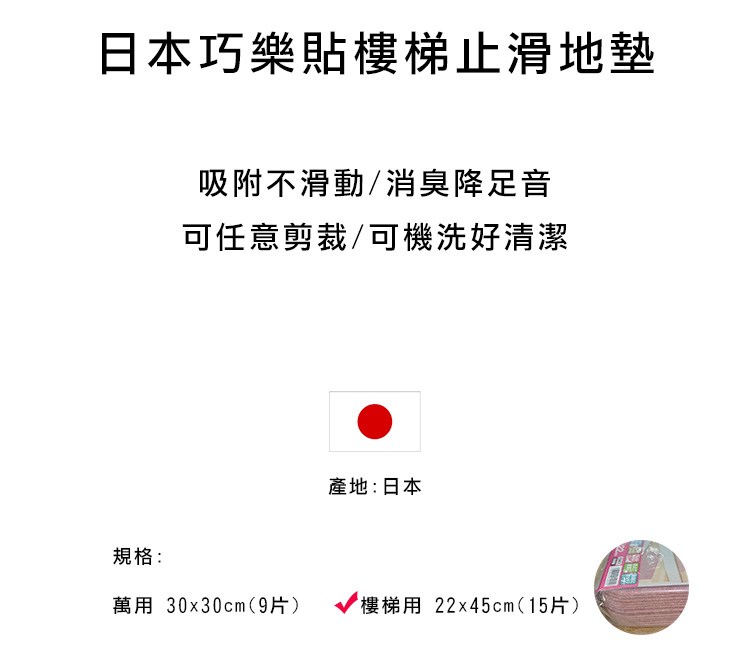 日本巧樂貼止滑樓梯墊 大地米 22x45cm 15片