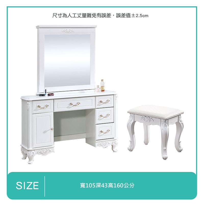 點我下載【LOVE樂芙】多溫妮莎歐風3.5尺鏡台(含椅)A25CG0274