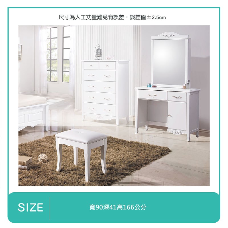 點我下載【LOVE樂芙】多艾莉歐風3尺鏡台(含椅)A25CG0276