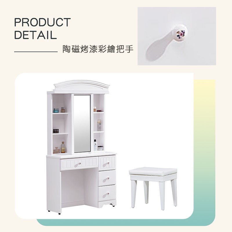 【顛覆設計】菲亞蘇3尺化妝鏡台(含椅)