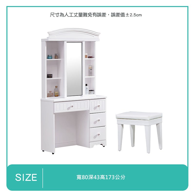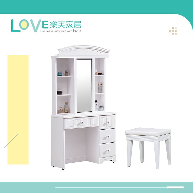 【LOVE樂芙】多瑪莎白色2.7尺鏡台(含椅)A25CG0277