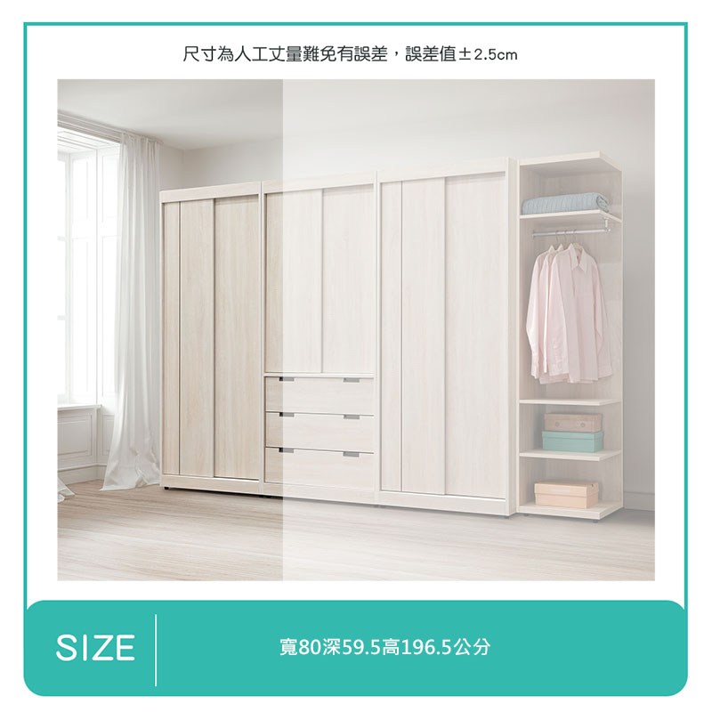 直人木業-北歐白楓木標準衣櫃195公分(全白雙門75公分+三抽75公分+開放櫃45公分)