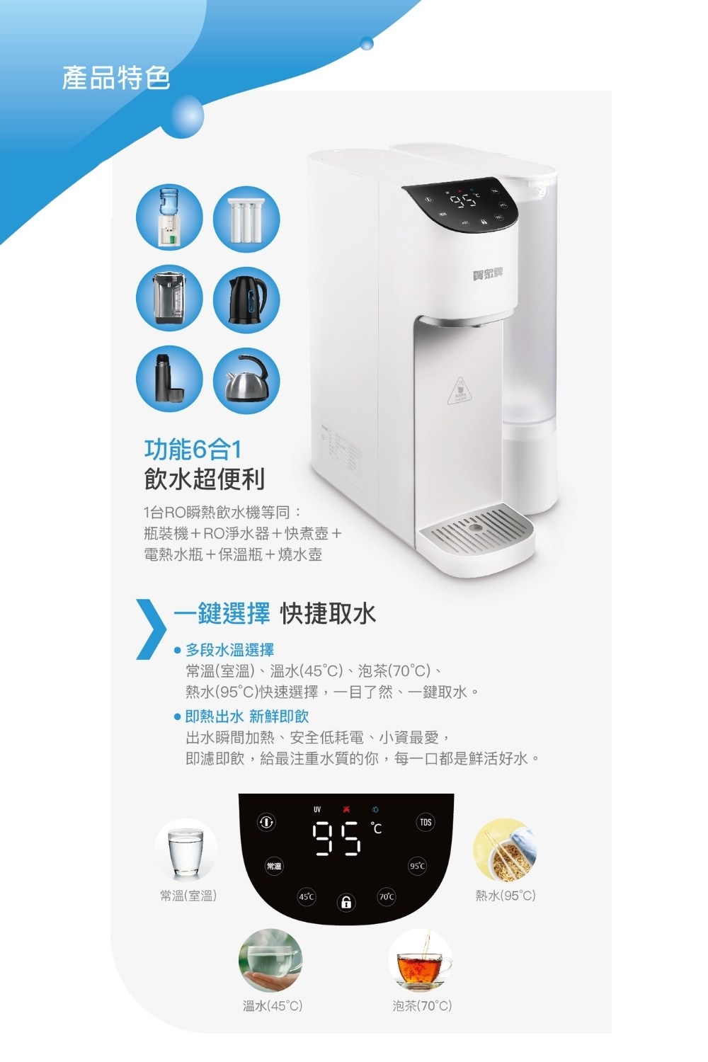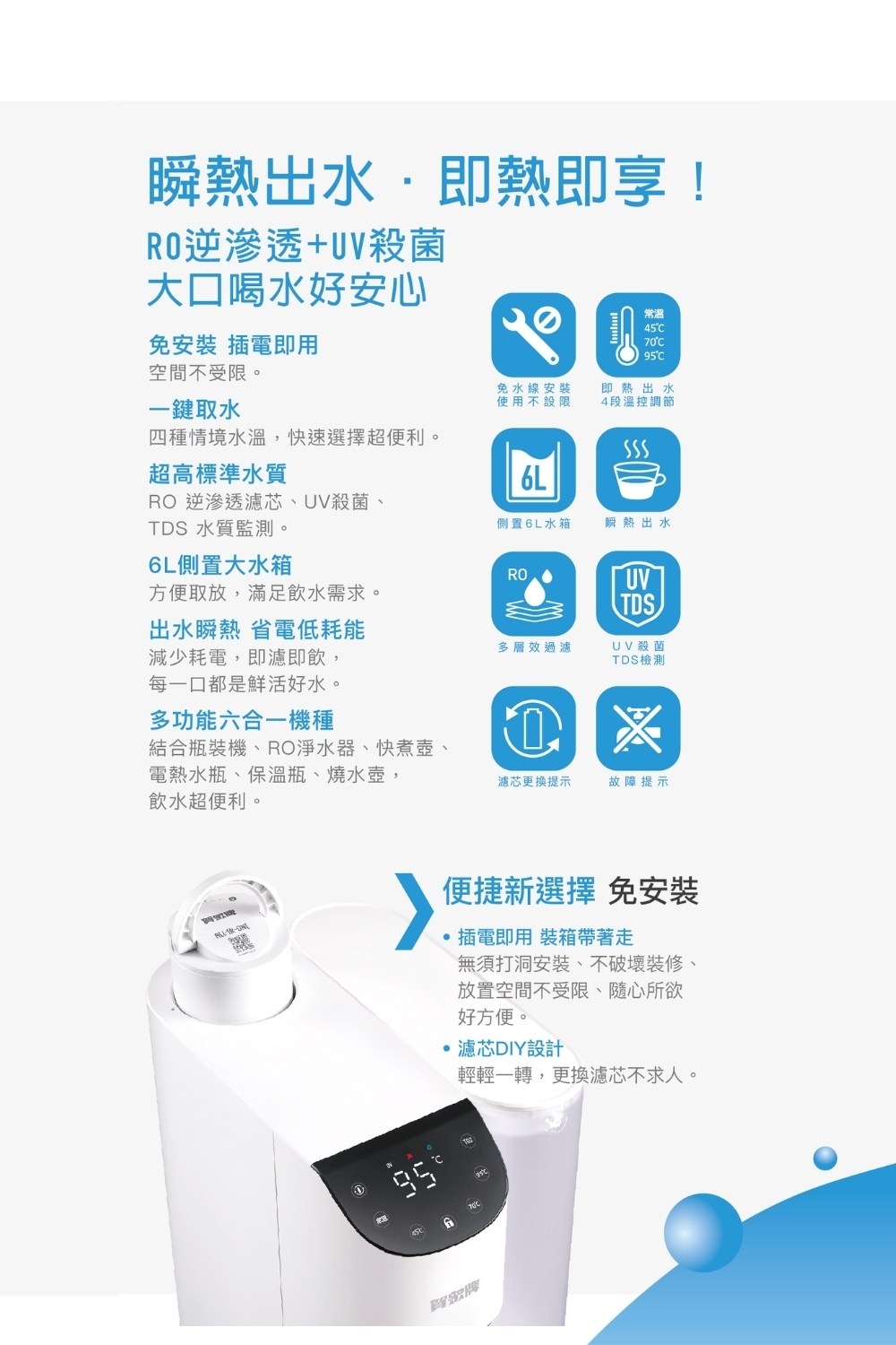 賀眾牌 UR-3322ELB-1 瞬熱飲水機(免安裝/TDS檢測/桌上型/瞬熱/RO逆滲透/UV殺菌)