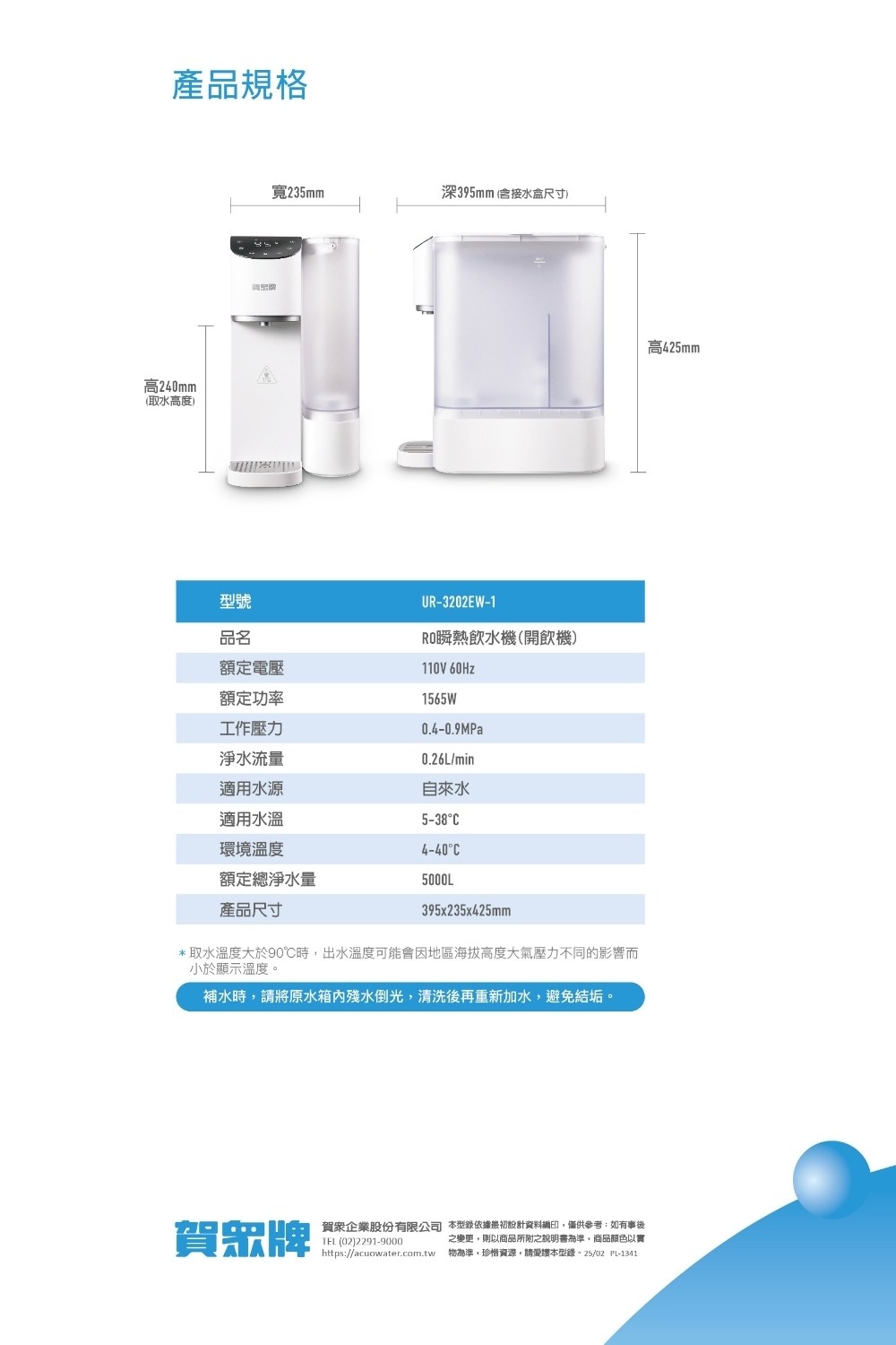 賀眾牌 即熱即享飲水機UR-3202EW-1(免安裝)