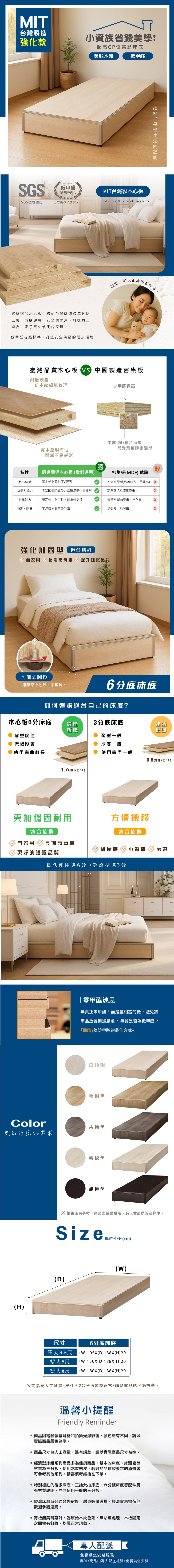 【本木】順天 六分加厚木心板床底/床架-單大 3.5尺梧桐色