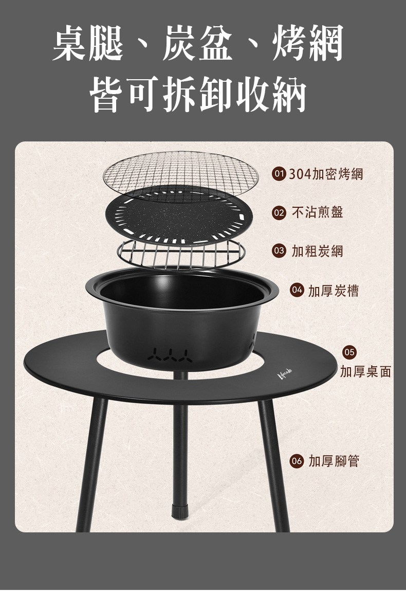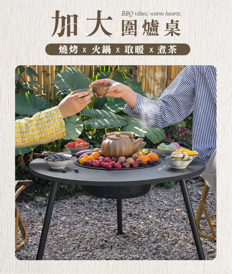 附桌蓋,變身桌子/烤肉桌/焚火台,機能一次滿足✅ 加大桌面 Ø65cm|最適合4-6人圍爐夜話