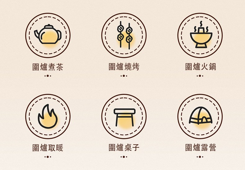 - 本款圍爐不適用柴火或者明火使用,建議搭配燒烤碳使用即可。