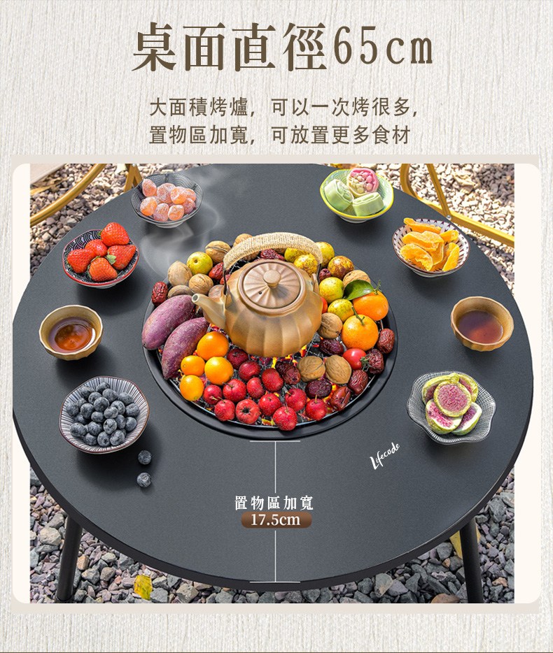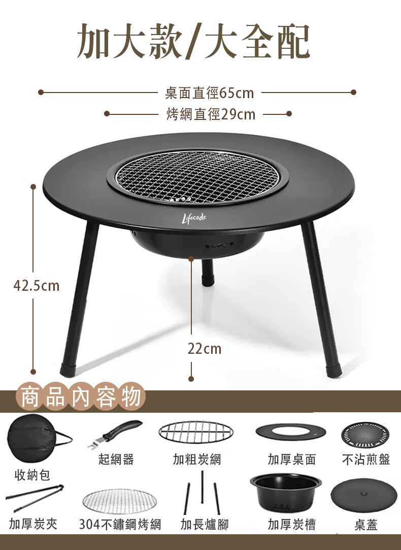 【LIFECODE】加大圍爐燒烤桌 Ø65cm(適4-6人)|大全配|多功能烤肉桌組