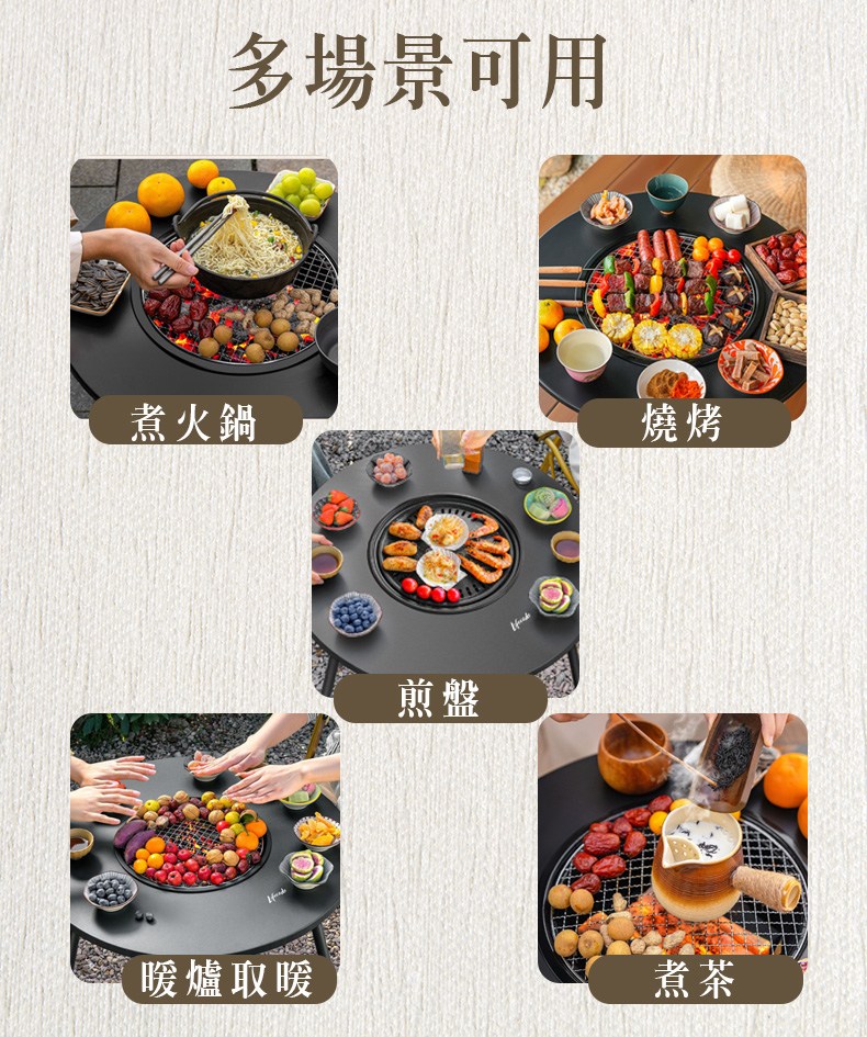 商品編號:12410300 烤肉、圍爐、煎烤、焚火一桌搞定!最強露營聚會神器!