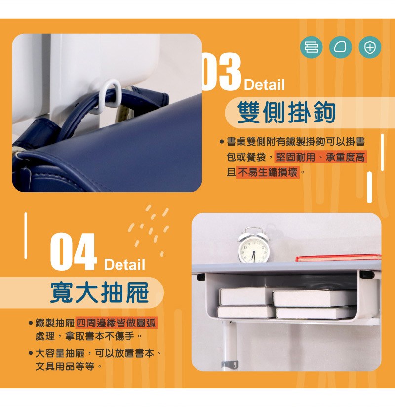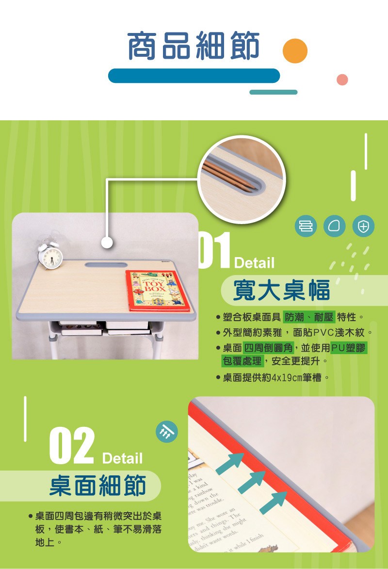 輕鬆放置各式學習用品,幫助養成收納整理的好習慣。