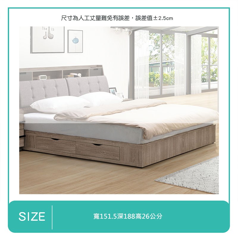 文創集 西瑟原橡5尺雙人可收納四抽床底(不含床墊)-152x188x26cm免組