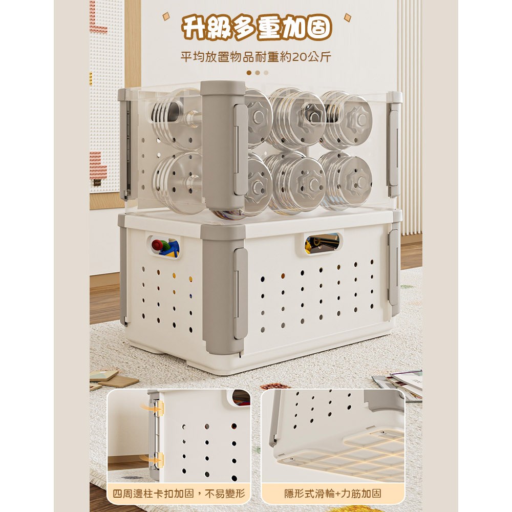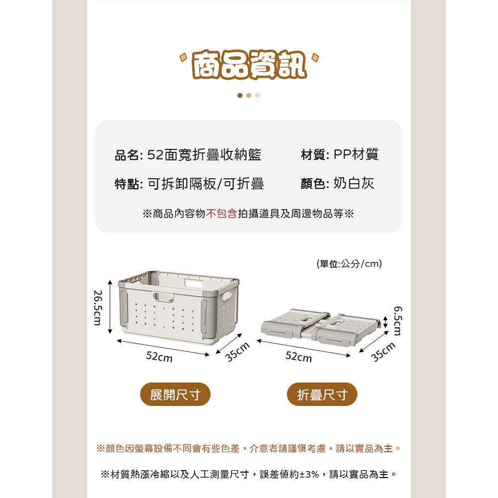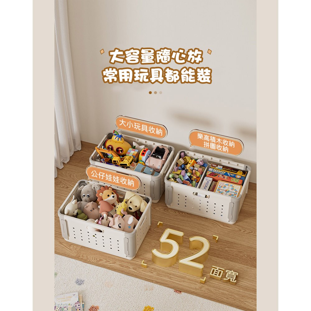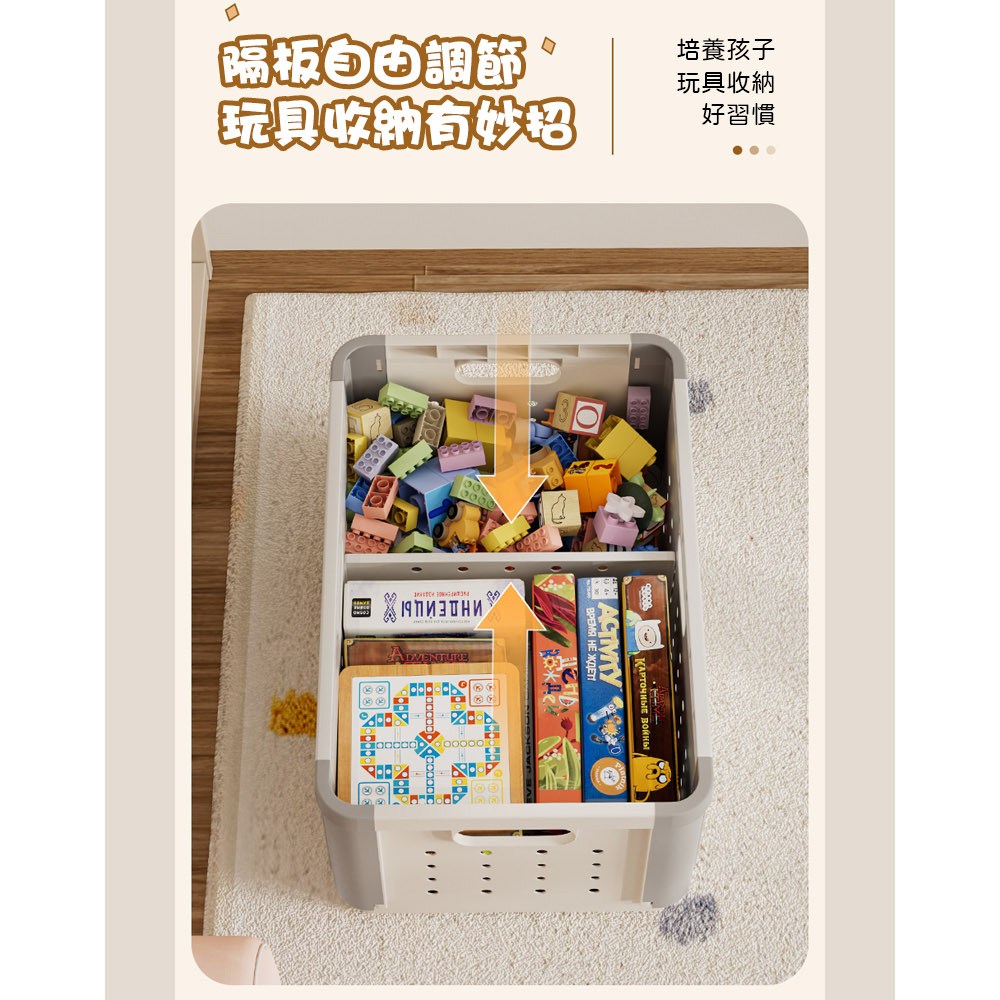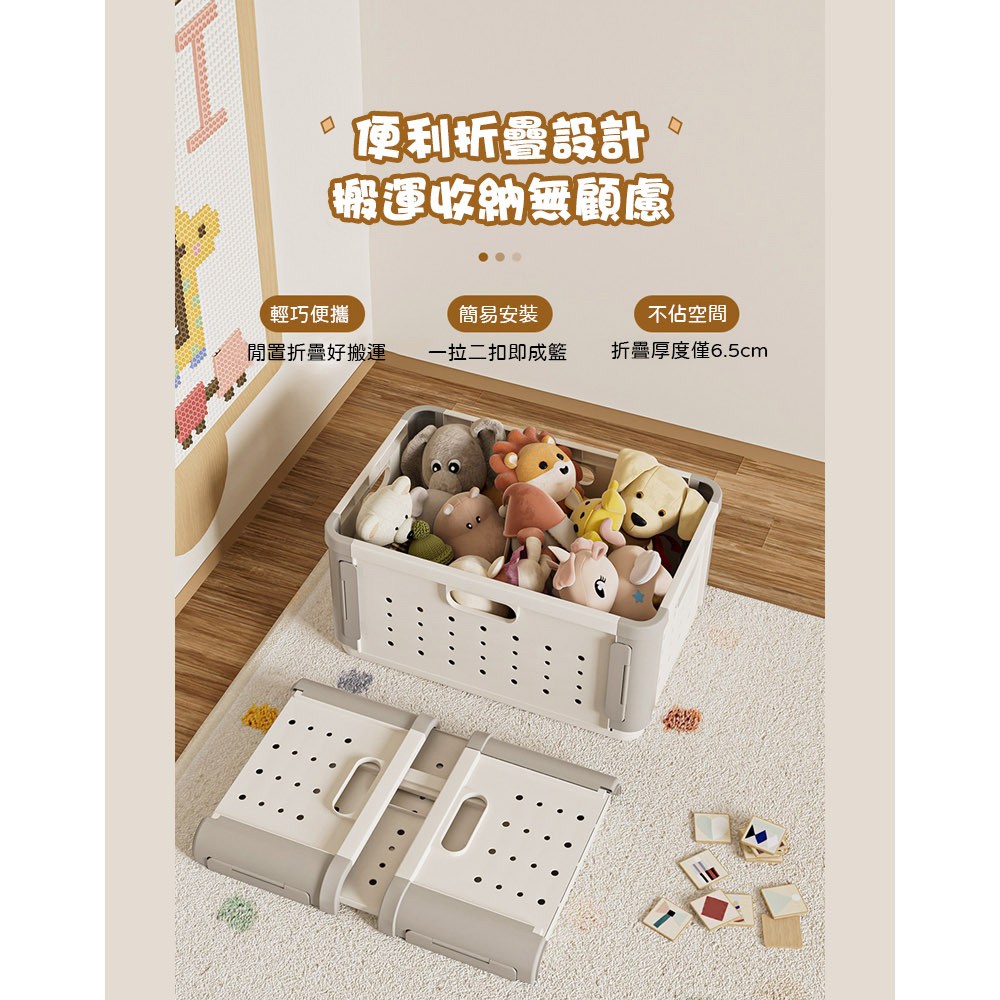 AOTTO 多功能拆卸隔板折疊收納籃-2入(收納箱 折疊箱 玩具箱)奶白灰