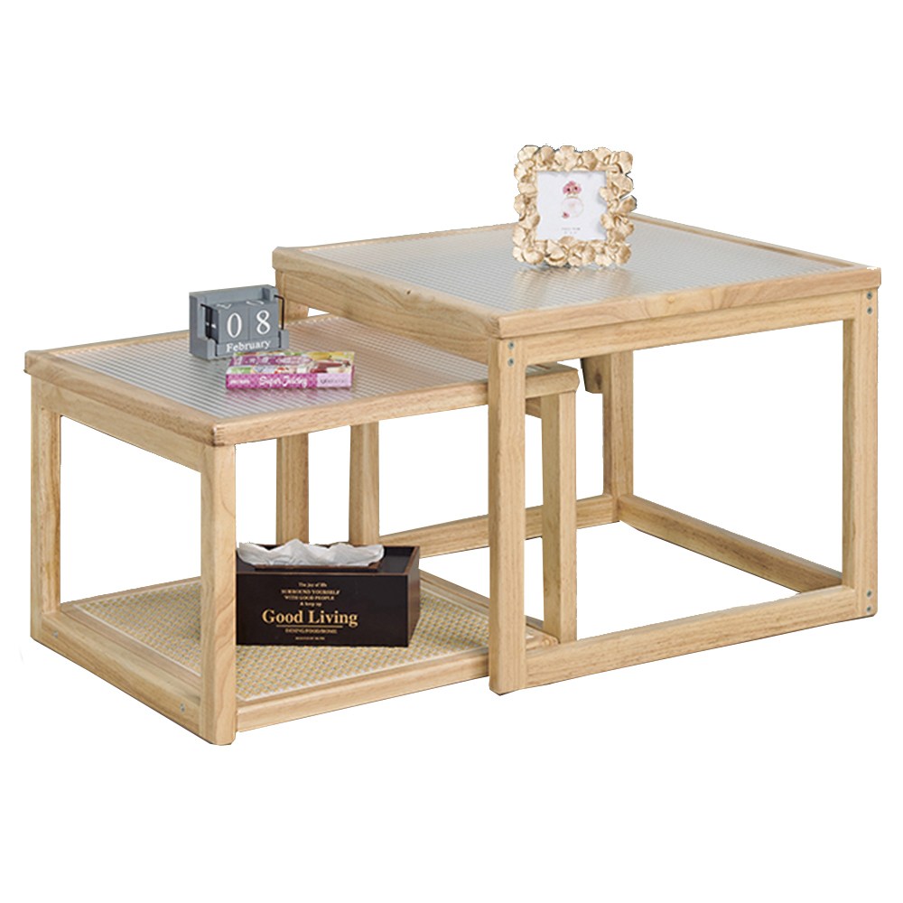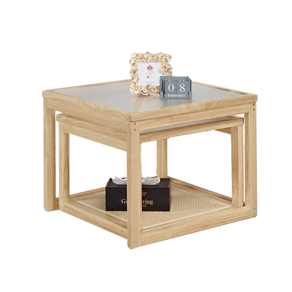 hoi! 源氏木語晶瑩橡木原木色玻璃方几組合 Y00J34(大+小)