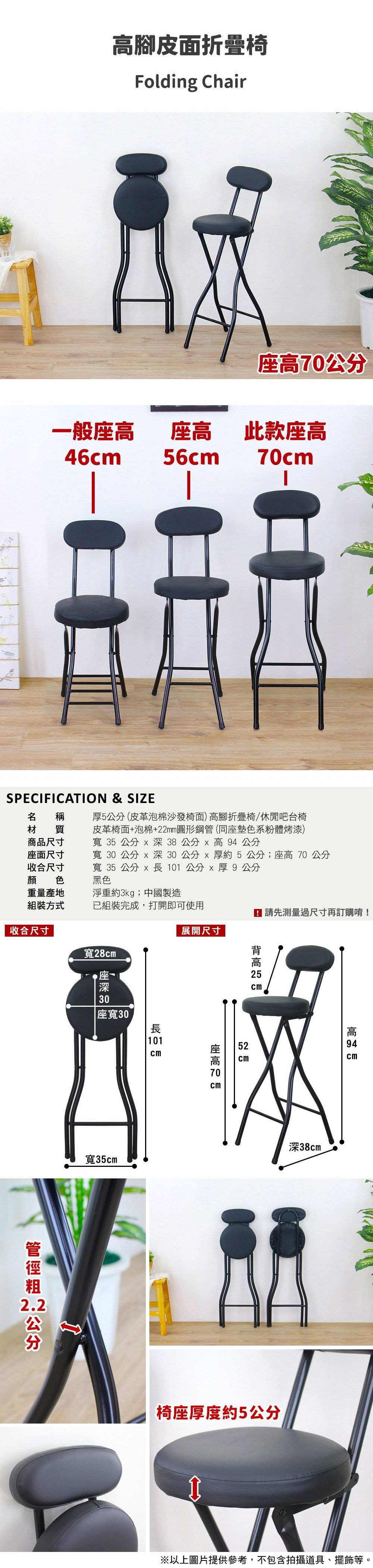 ◆商品名稱:高背(皮革沙發椅座)高腳折疊椅/摺疊吧台椅/休閒餐椅