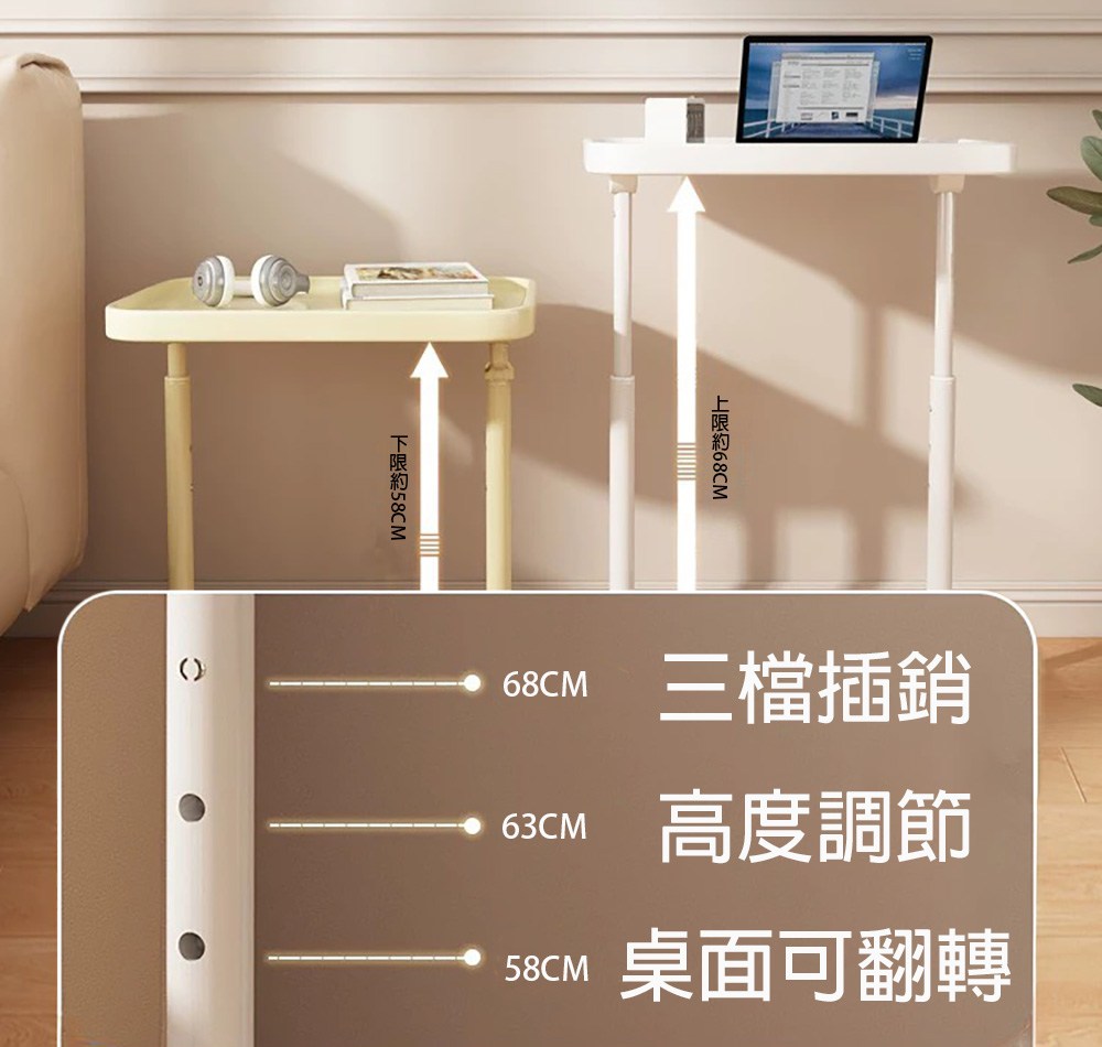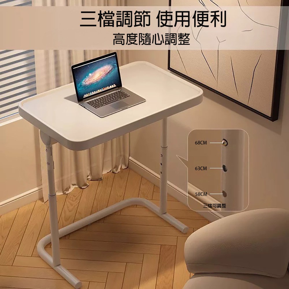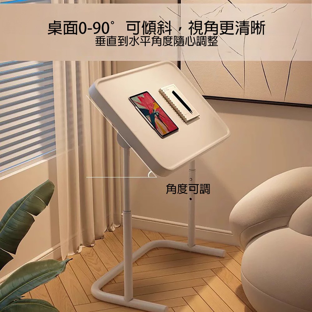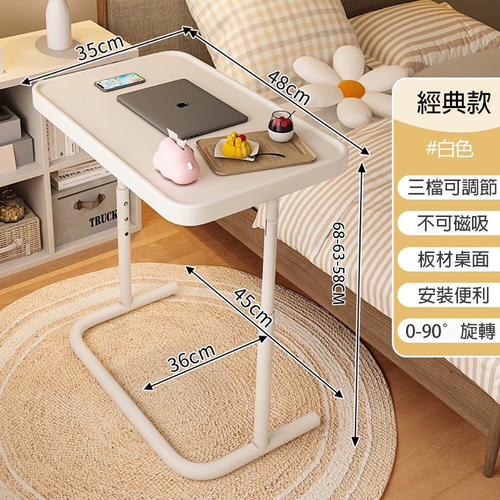 【好氣氛家居】多功能雙桌面移動式升降邊桌/床邊桌(書桌 懶人桌 辦公桌 電腦桌)白色