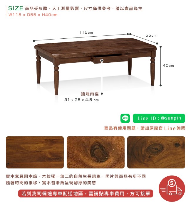 ・實木家具因木節、木紋獨一無二的自然生長現象,照片與商品有所不同。