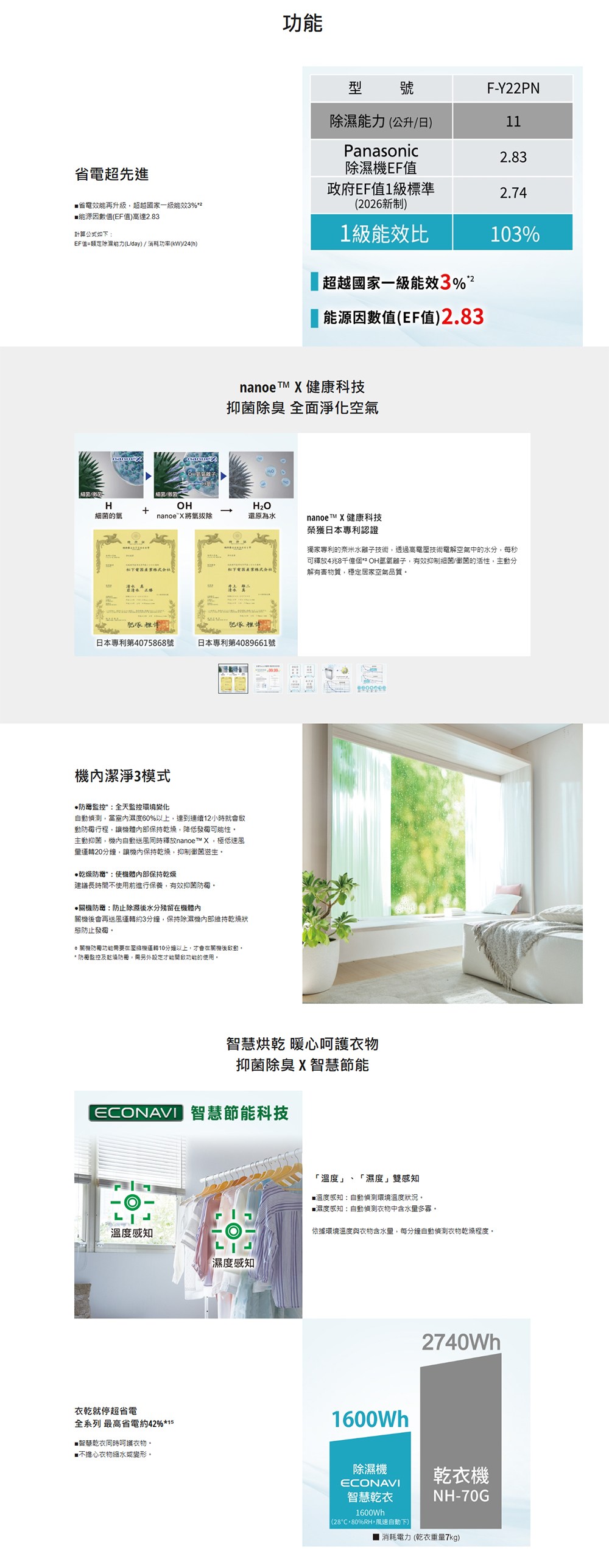 Panasonic 國際牌 11公升一級能效nanoeX除濕機(F-Y22PN) 此商品沒有7天鑑賞期 沒有辦法退貨 都是走維修保固 您可以在下單