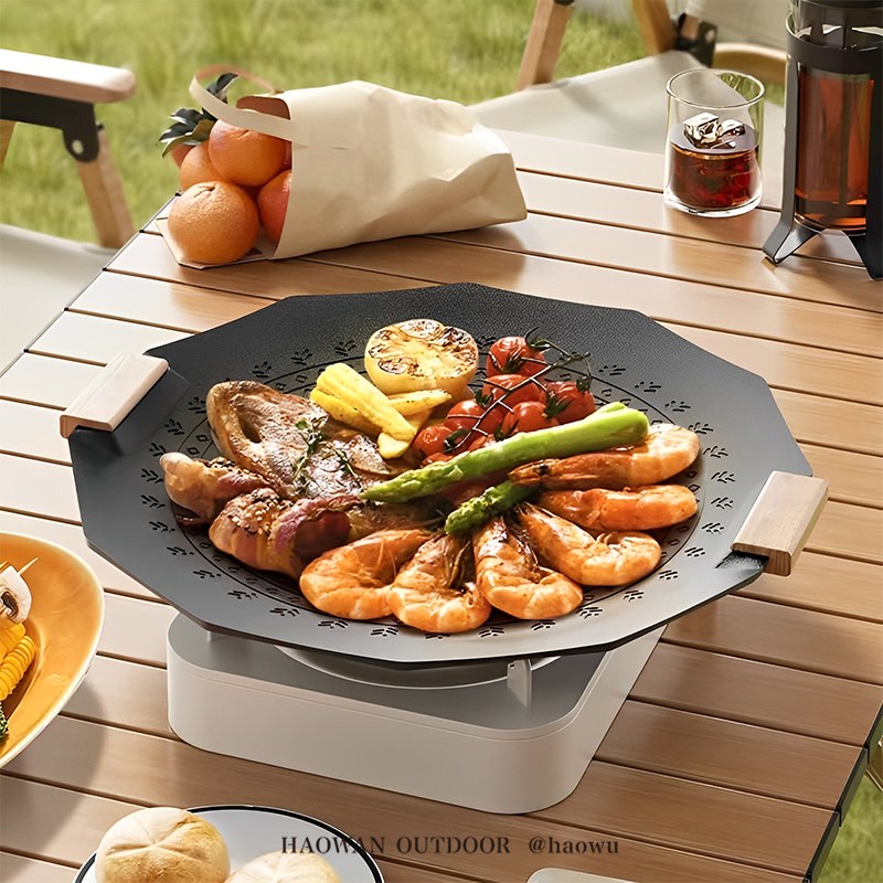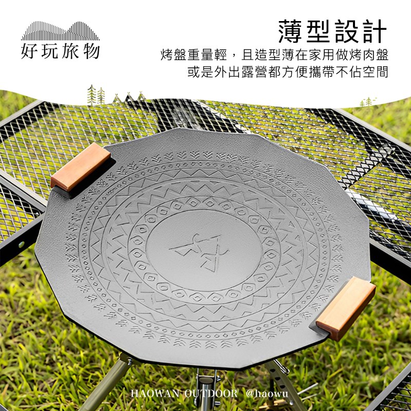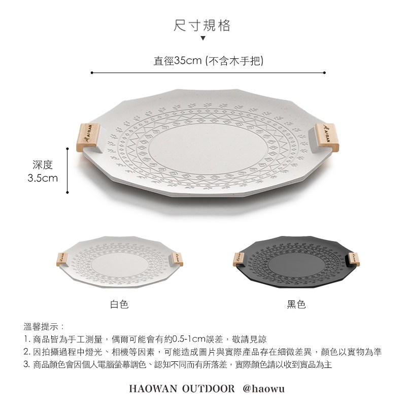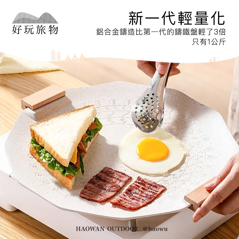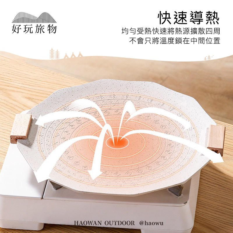 【好玩旅物】35cm_ 六角形麥飯石不沾鍋露營烤盤35cm_白色