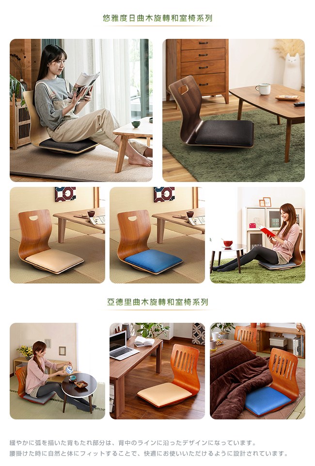 陽光輕輕透過布簾,緩緩灑落在和室的空間裡,斑駁時光、錯落回憶。靜謐的日式風格,溫暖的幸福居家,【C'est Chic】悠雅度日曲木旋轉和室椅,就是為此而設計。曲木工藝,人體工學設計,貼合身形,自然放鬆依靠。360° 旋轉底座,方便入座與起身。座墊高 9cm,讓雙腿自由伸展。在日式柔和感的氛圍中,多一分舒適與美感。