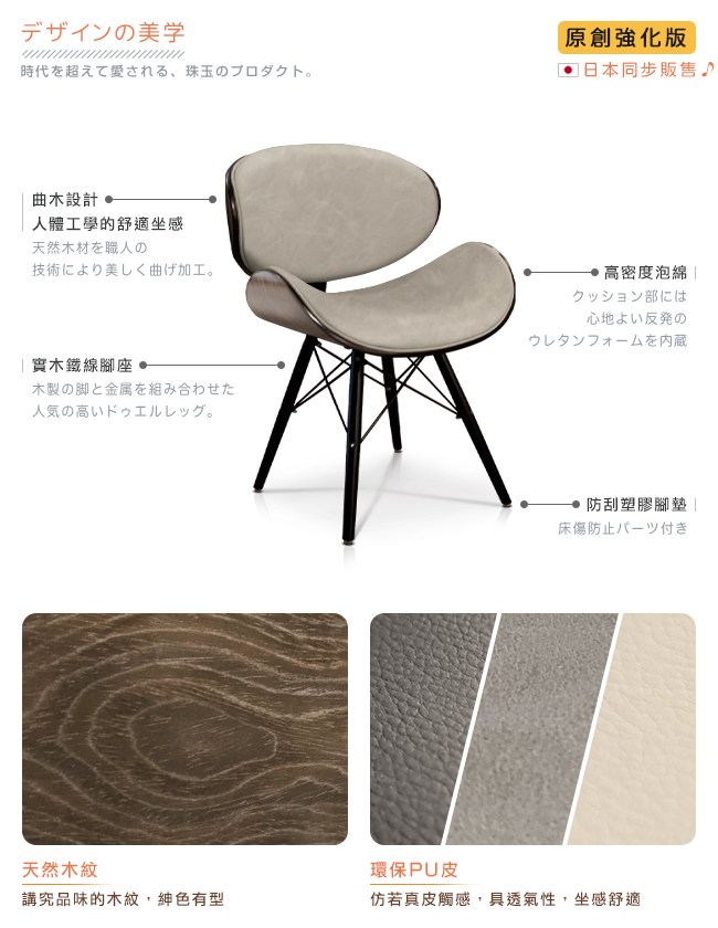 ◆ 曲木設計,高密度泡綿座墊
