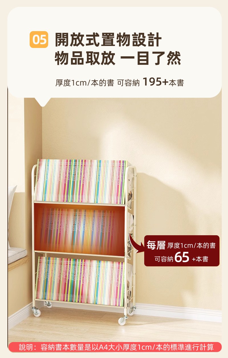 【慢慢家居】專人組裝-升級層板-奶油風超穩固可移動鐵藝五層書架(文件推車 兒童書架 移動書櫃 置物架)創意移動書架-五層(升級層板)