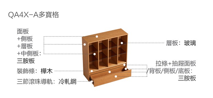 HOPMA家具 摩登四門收納櫃 台灣製造 置物櫃 書櫃 四門櫃 四層櫃-寬42 x深30 x高119cm