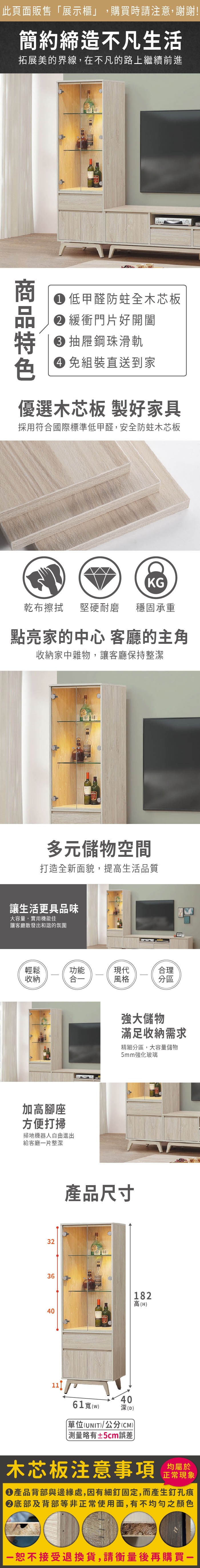 點我下載ASSARI-喬伊詩2尺展示櫃(寬60x深40x高182cm)