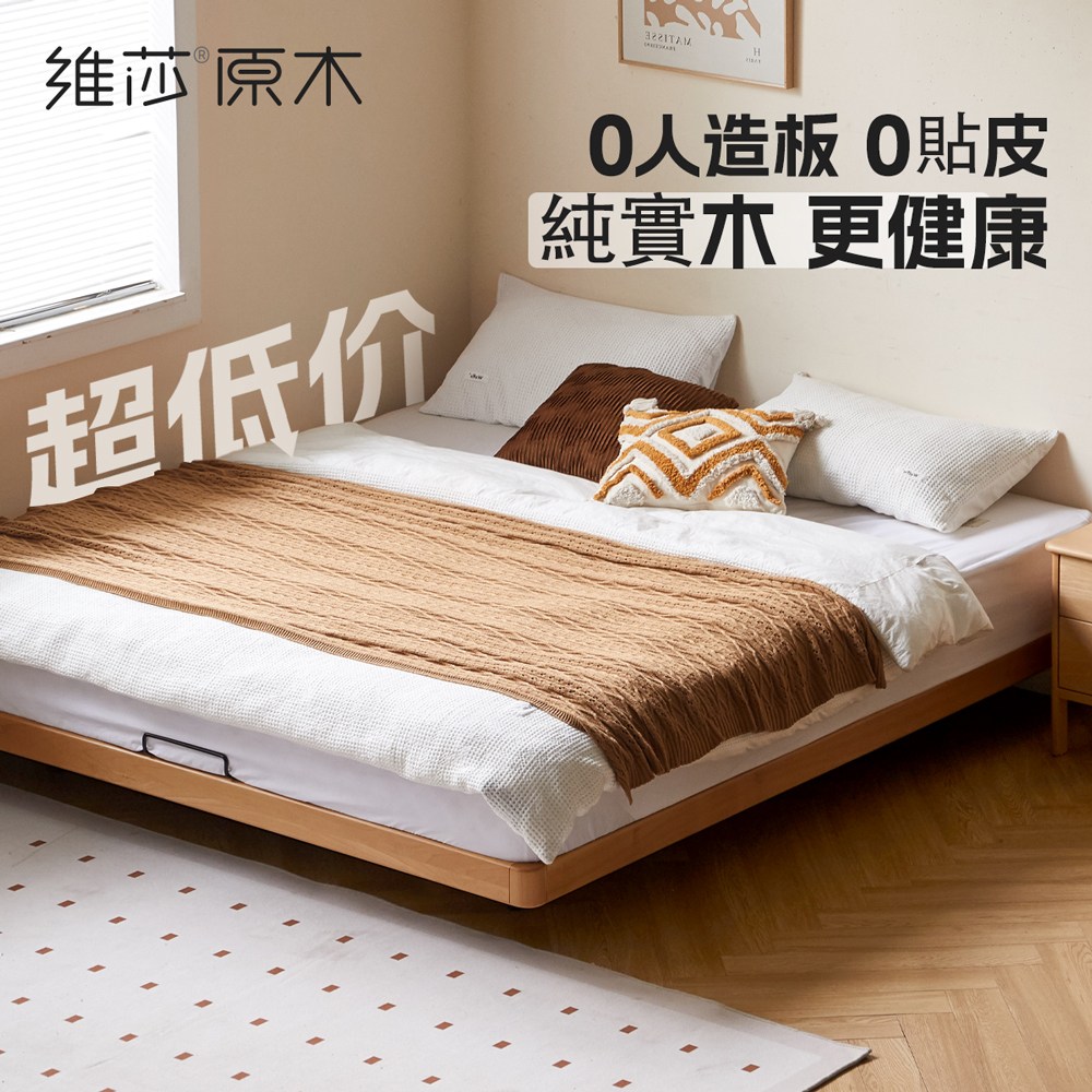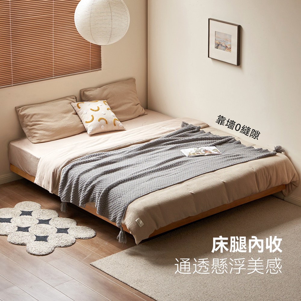 源氏木語嵐嶼白蠟木實木低鋪雙人床架150X200Y154B04-(H014413729)