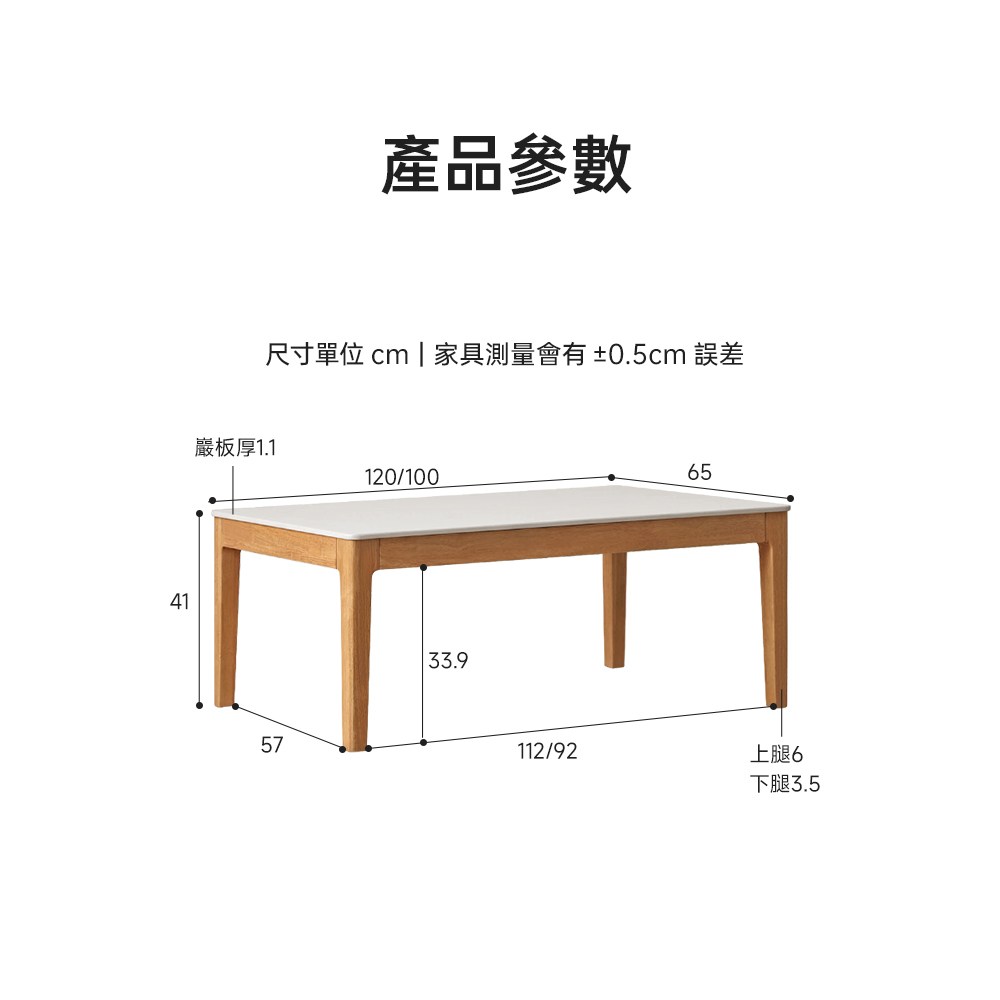 【RICHOME】實木象牙白岩板大茶几 (W100CM)W100CM