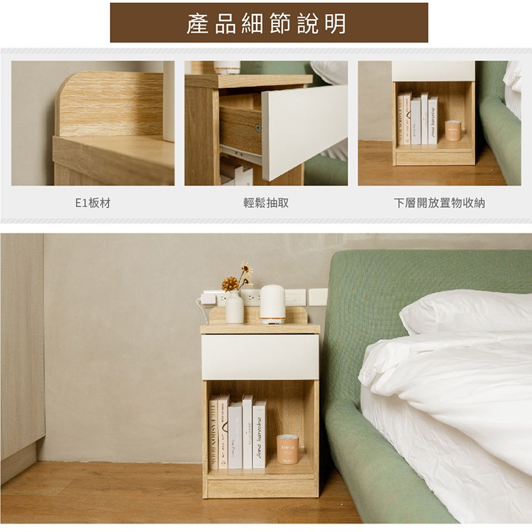澄境 低甲醛附插座單抽床頭櫃集成木紋
