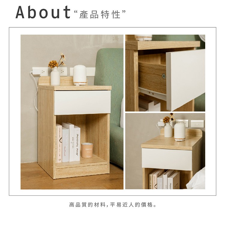 佳美 簡約仿舊床頭櫃收納矮櫃儲物櫃(附插座)