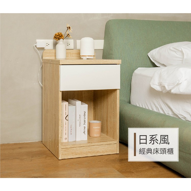 日系三抽屜床頭櫃(大款)(附插座) 4色【台灣製】