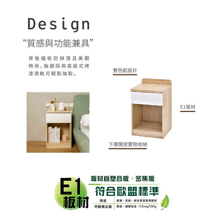 【日安家居】MIT愛拉1.3尺活動櫃/兩色(床頭櫃/二抽櫃/櫃子)白梧桐
