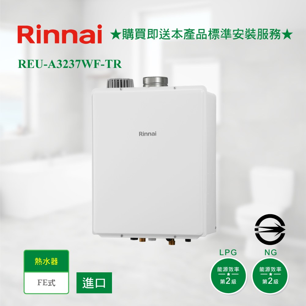 (全省安裝)林內32公升屋內強制排氣FE式熱水器天然氣(雲嘉以南) REU-A3237WF-TR-NG2 ★送陶板屋餐券9張