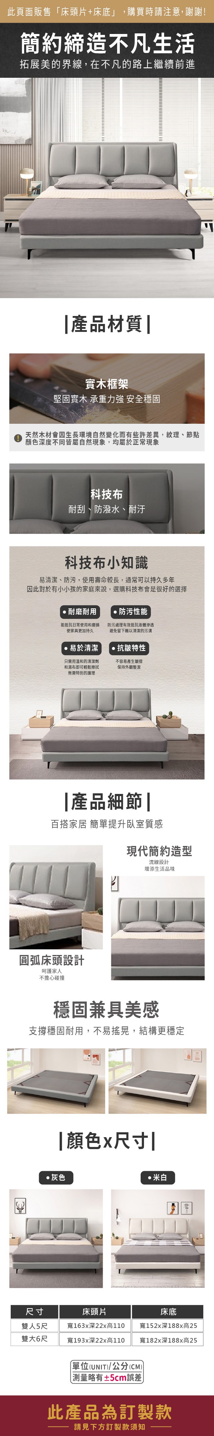 ASSARI-米蘭科技布房間組(床頭片+床底)-雙大6尺米白