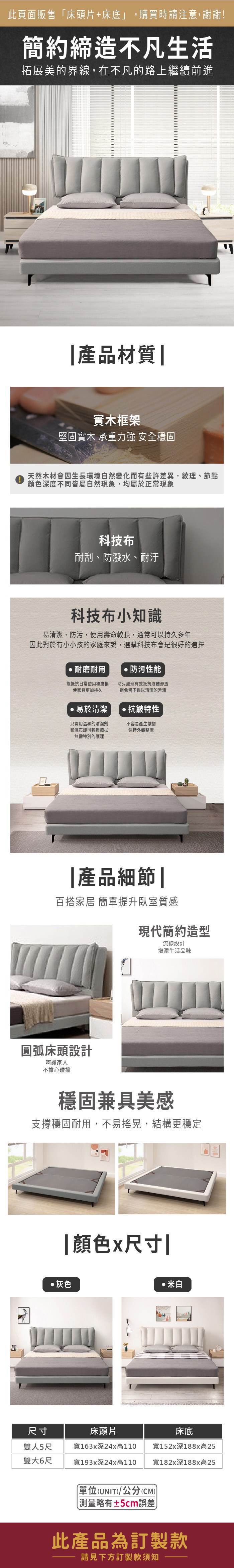 ASSARI-米蘭科技布房間組(床頭片+床底)-雙大6尺米白