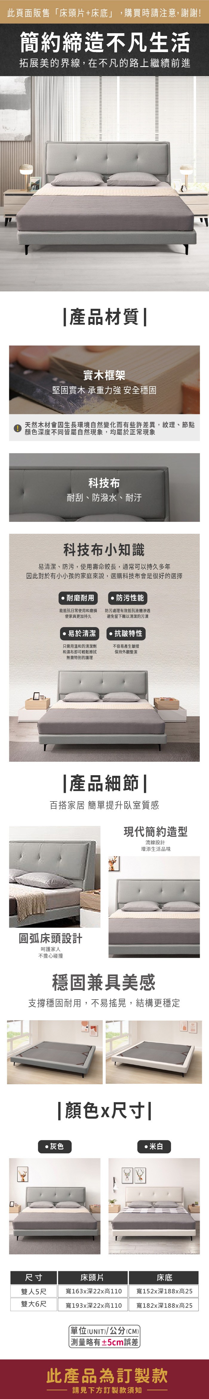 ASSARI-布拉格科技布房間組(床頭片+床底)-雙大6尺米白