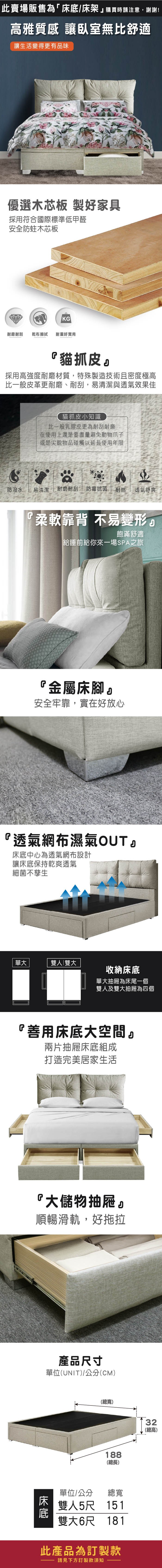 AS雅司-松樂5尺四抽收納床底-152x188x26cm--只有床底
