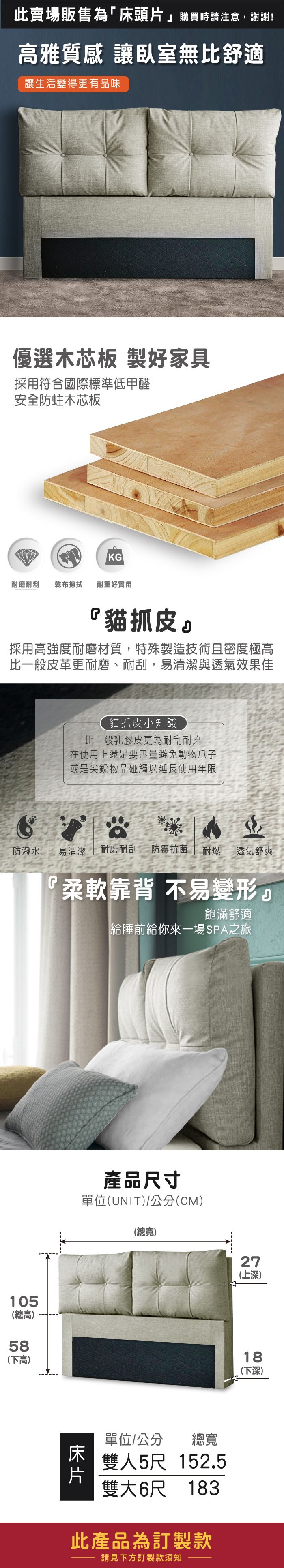 【obis】Price普萊斯雙人加大6尺床頭片/貓抓皮(不含床底)(