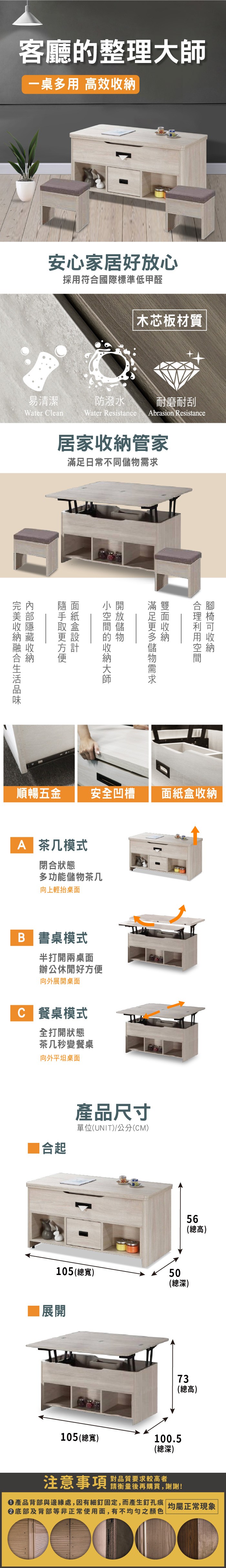 IHouse-士元 美耐板緩衝升降 客廳茶几(1桌6椅)/餐廳餐桌 梧桐