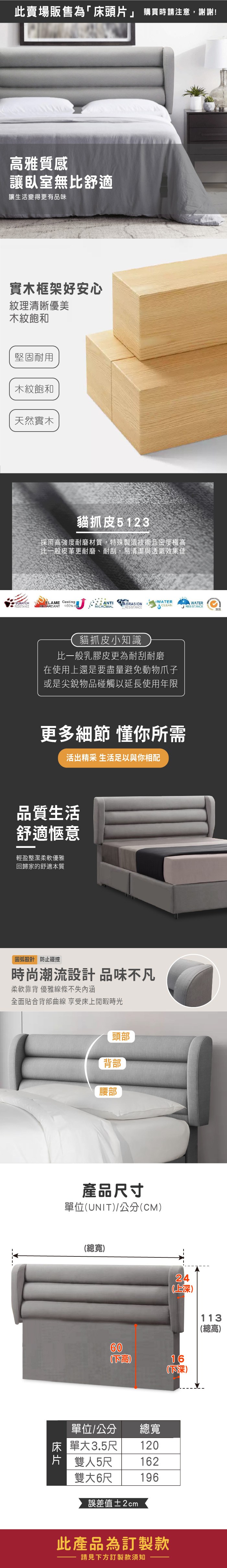 (可客製)Kathy凱西 貓抓皮單人加大3.5尺床頭板 完美主義【R0256】