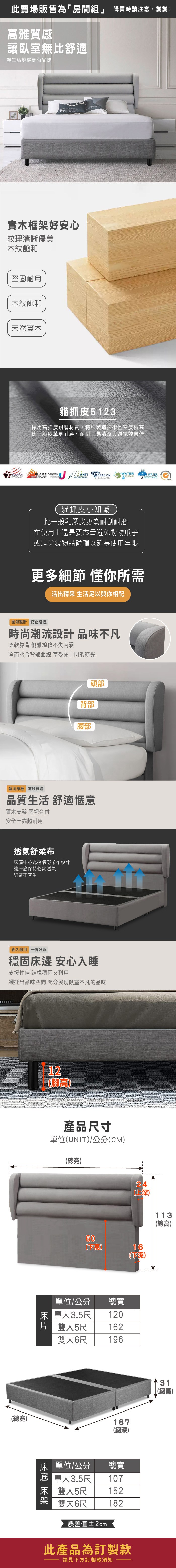 【本木】瑪莉 機能耐刮防潑水貓抓皮房間組(床片+床底)-雙人5尺#79 大象灰