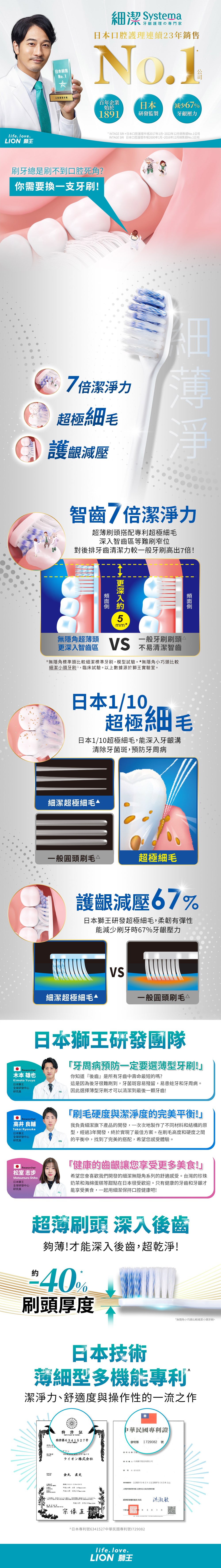 LION 獅王 Systema 細潔 無隱角極柔護齦牙刷 Set 2支 超薄刷頭0死角 柔軟呵護40% 2包